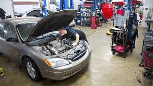 a CAR in a repair shop