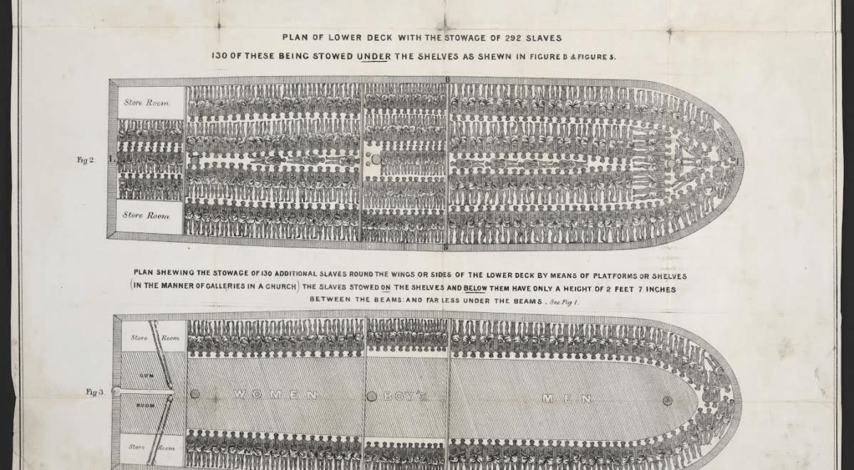 The journey of slaves packed onto cargo ships like the one seen here was known as this...