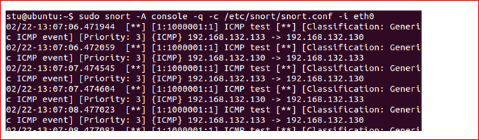sudo snort -A console -q -c /etc/snort/snort.conf -i eht0