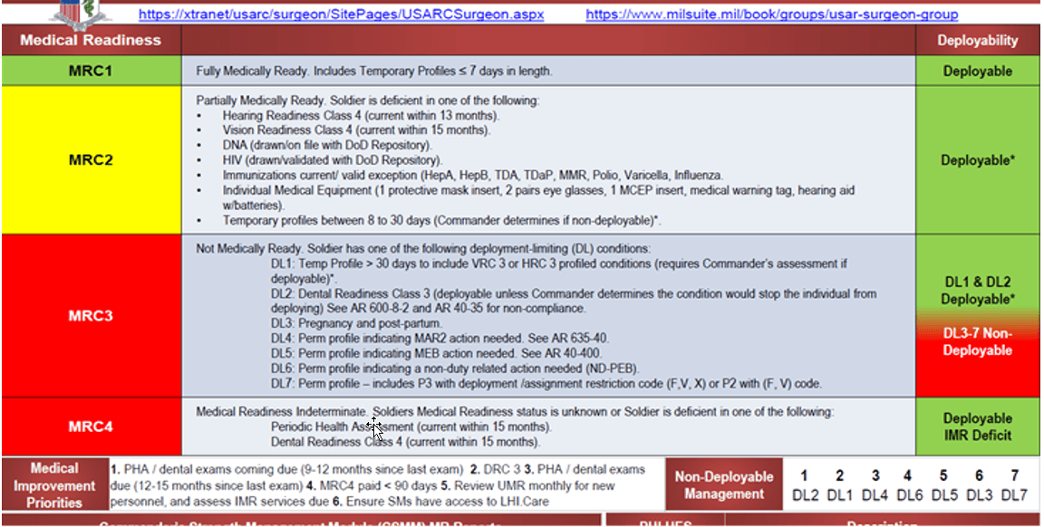 A centralized approach to managing all aspects of an Army Reserve Component Soldier’s medical readiness information and care history.