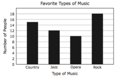 55 people were surveyed about their favorite types of music. The results are shown in the bar graph below.