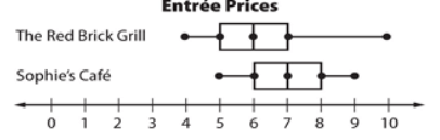 True or false? The Interquartile Range is greater for Sophie's Cafe than Red Brick Grill.