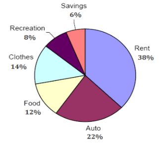 Ethan's monthly income is $800, and is budgeted as shown in the circle graph below.