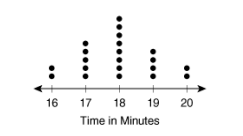 Reggie recorded how long randomly selected students took to walk one mile. This dot plot shows his data.