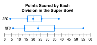 True or false? Players are less likely to score above 20 points in the AFC than the NFC.