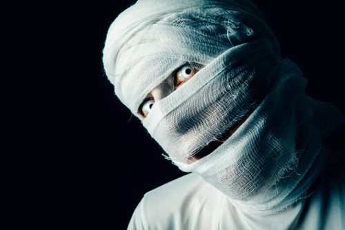 What mask makes you look like a mummy that has been suffocated from your head to your eyes?
