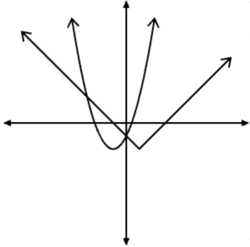 Draw an absolute value and a Quadratic that has 2 solutions.