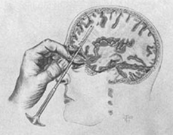 Lobotomies (also performed commonly through nasal entry) were common in early psychosis patients because it separated the brain hemispheres and essentially put the patient in a vegetative state.