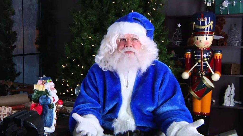What country’s Santa wears blue instead of red?