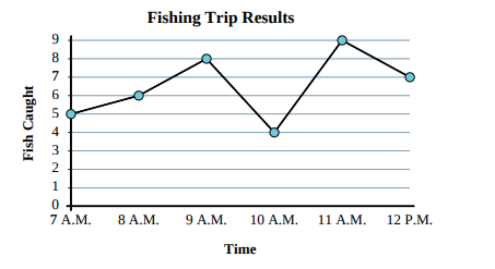4,5 6,7 8,9 3,2 1,5How many more fish were caught at 11 am than 8am?