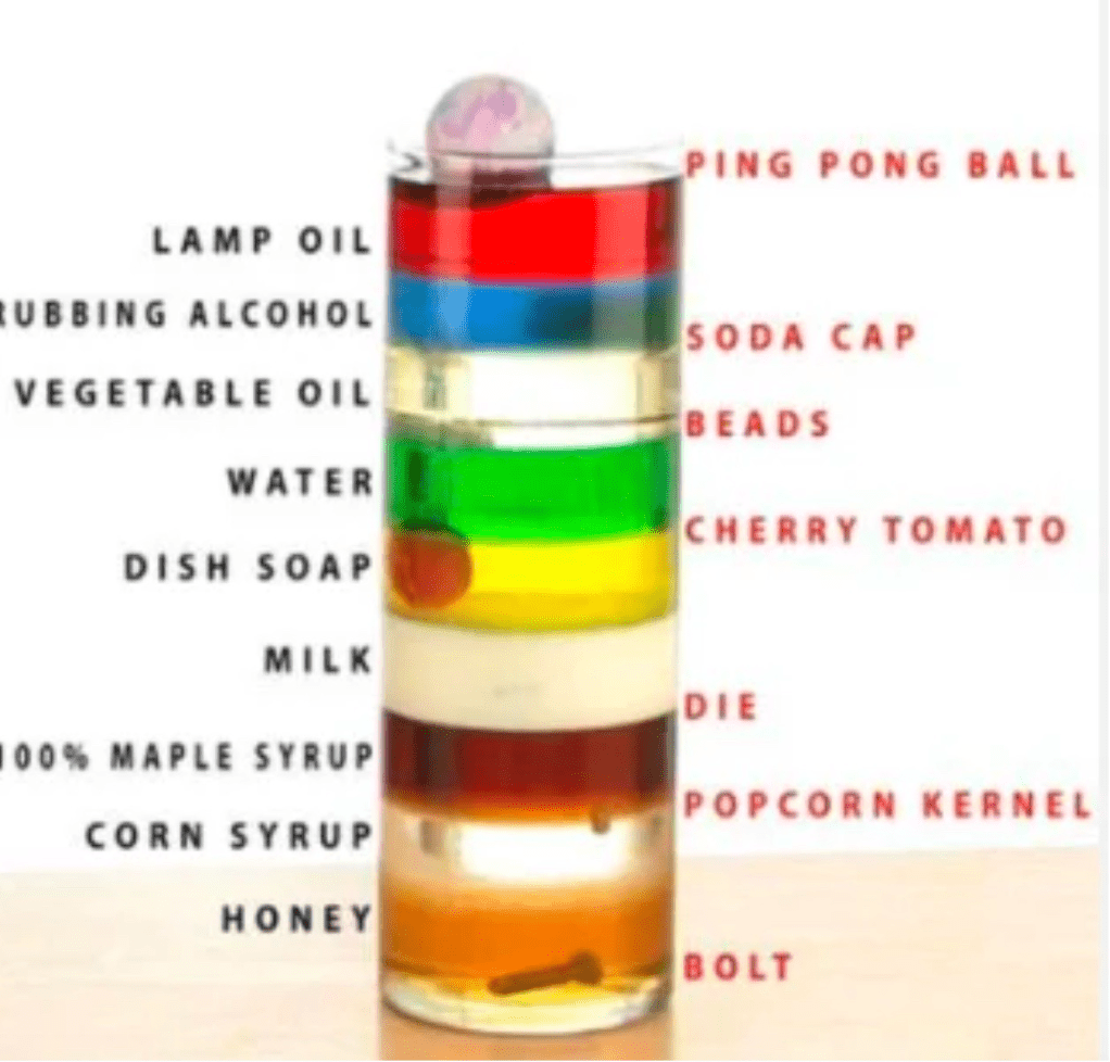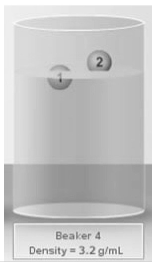The liquid has a density of 3.2 g/mL. The object that is more dense.