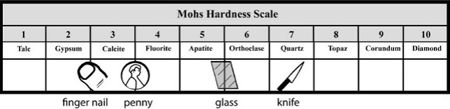 A student is testing several minerals in science class. First, the student scratched the minerals across a tile and then scratched the minerals with a copper penny and a steel tool. What physical properties is the student testing?
