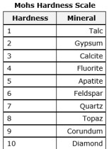 Refer to the below Mohs Hardness Scale table. Which of the following is a correct statement about a mineral with a hardness rating of 7?