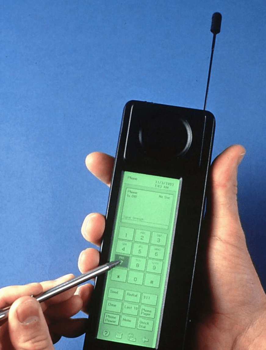 Considered the first "smartphone" due to its combination of a cellular phone and PDA features like a touchscreen, calendar, address book, email, and fax capabilities.