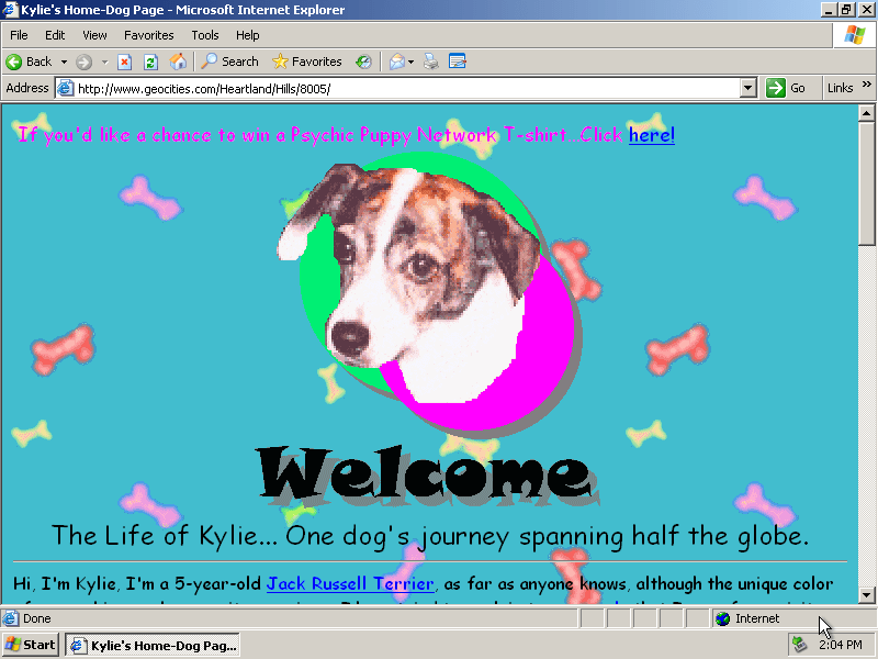 A popular free web hosting service that allowed users to create and publish websites from 1994 until its closure in 2009. It was remembered for its role in making the early internet accessible and for its distinctive, often flashy, 1990s aesthetic. Lots of glitter...