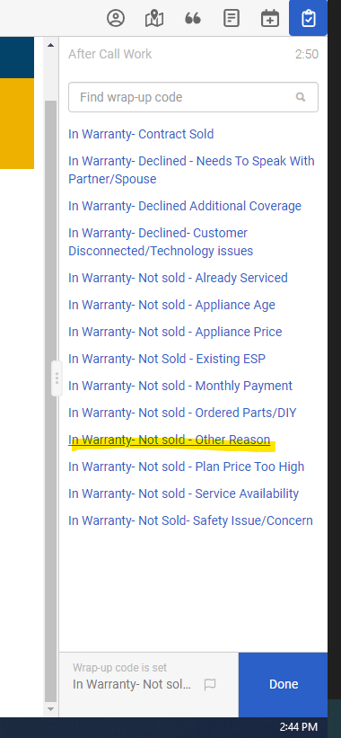 If there isn't a wrap up code that fits the category as to why the consumer didn't purchase, I don't need to choose a code.
