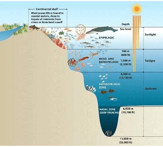 These type of organisms don't live in very deep water, since there is little sunlight for them to do photosynthesis.