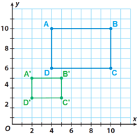 Dilate the following coordinates by a scale factor of 1/5 with the origin as the center of dilation: