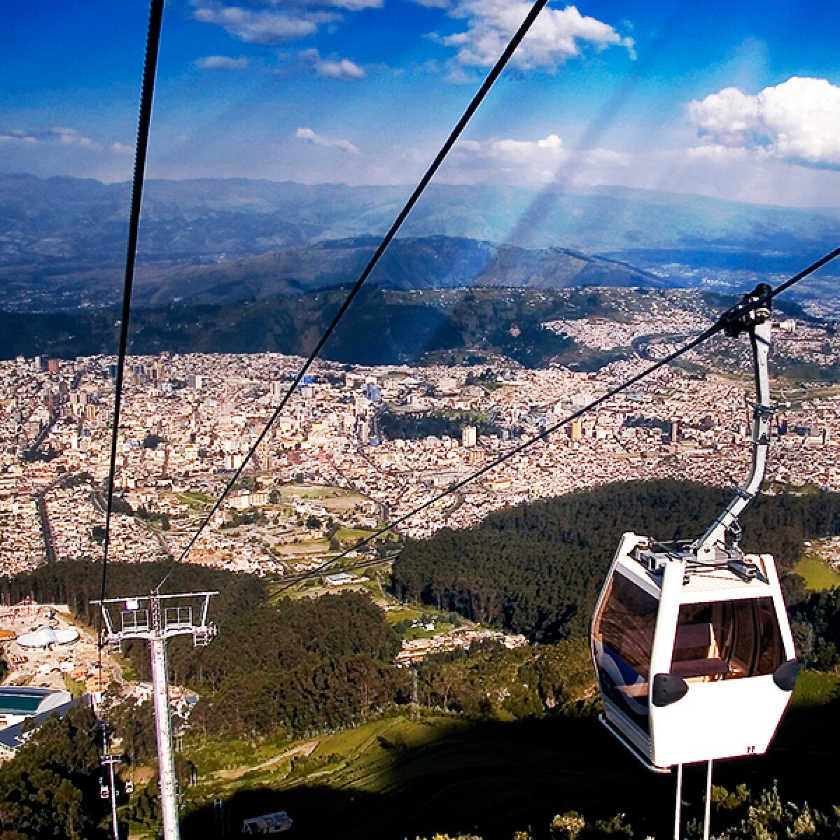 Which modern cable car offers panoramic views of the city from Cruz Loma?
