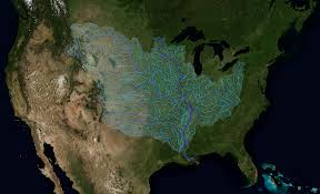This image shows the watershed (system of rivers that drain into a larger river) of the largest river in the U.S.