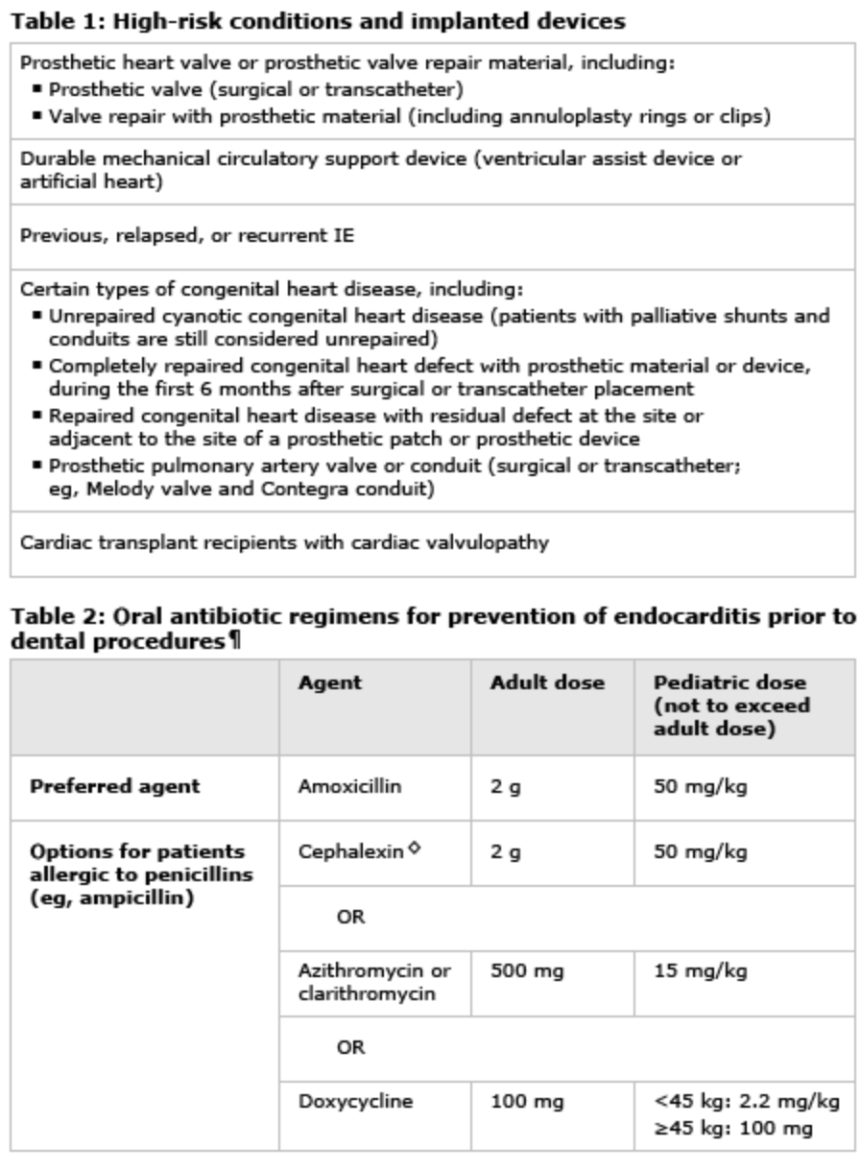 1) What are ALL the indications for endocarditis antibiotic prophylaxis in a patient undergoing dental procedures