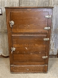 In the days before refrigeration was widespread, what piece of furniture was used to keep food cold, requiring regular deliveries of a large block?