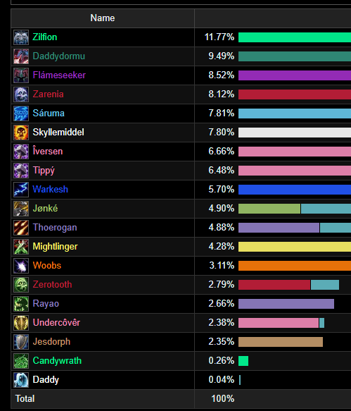 Hvem ligger heeeelt i bunden på damage på adds på Forgeweaver Araz?