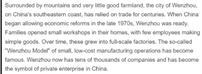 Based on the passage, it appears that Wenzhou lacks which of the following factors of production?