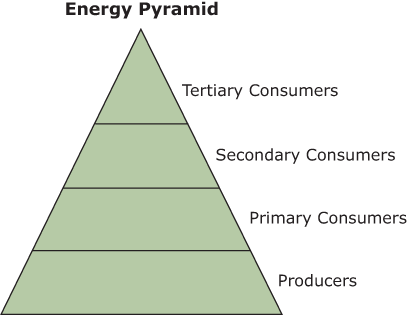 Which statement correctly describes the flow of energy through this pyramid?