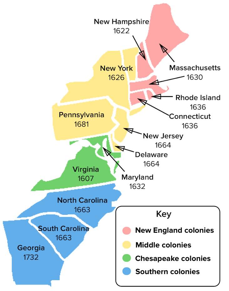 Virginia, Plymouth, New York, New Jersey, Vermont Maryland, Pennsylvania, Delaware