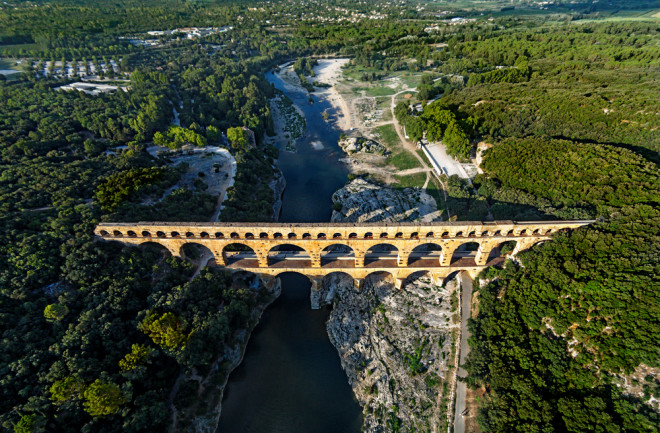 The Romans built these things to transfer water from the mountains to the cities. One can still be seen in Gjirokaster.