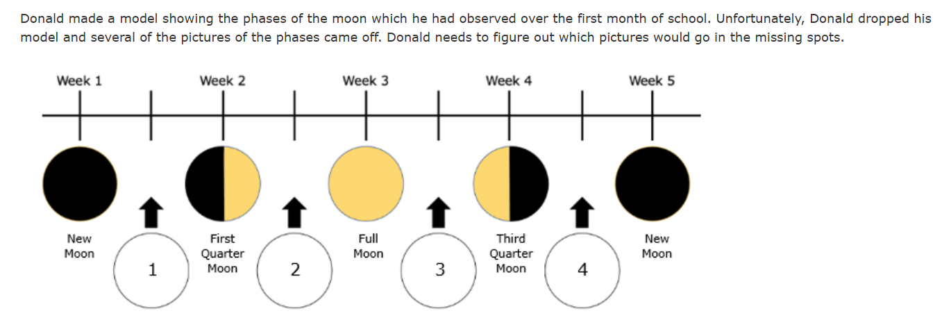 When the moon is _______ it is getting bigger, and when it is ______ it is getting smaller.