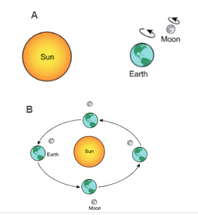 Model A is showing that the Earth and the Moon both rotate and Model B is showing that the Moon is in the Earth's orbit while the Earth is revolving around the Sun