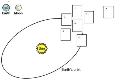 The Earth would need to be in box 5 and the Moon would need to be in Box 3
