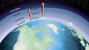 troposphere, stratosphere, mesosphere, thermosphere, exosphere