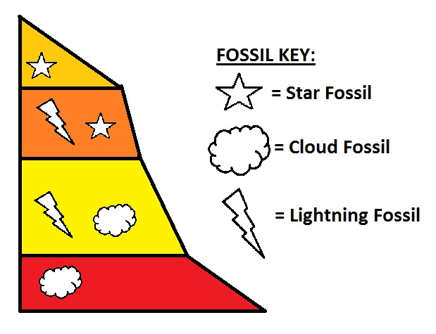 Use the diagram of the rock wall to tell how the "Star" fossil relates to the "Lightning" fossil.