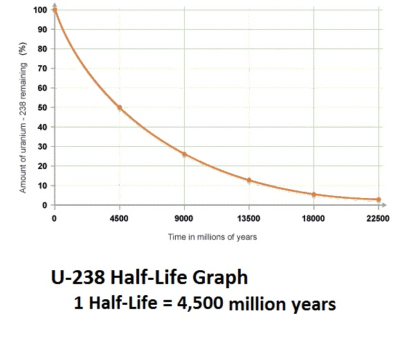 Using the Half-Life Graph of Uranium 238 predict how old a sample is that contains 12.5% of the parent isotope.