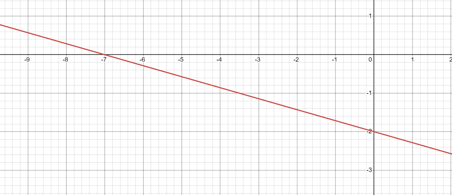 Graph the line -2x-7y=14. State the x-intercept and y-intercept.
