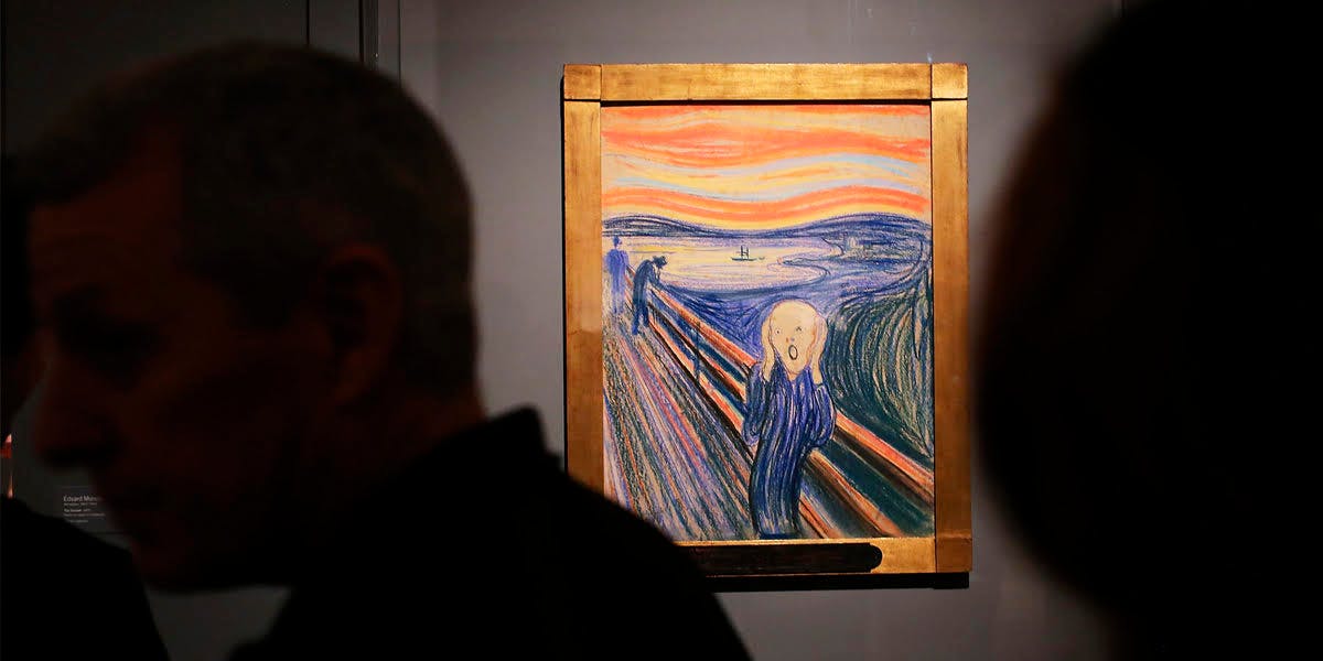 The Scream by Edvard Munch. Painted in 1893, this iconic artwork has been stolen twice from Norwegian museums, most famously in 1994 and again in 2004. Fortunately, both times it was recovered!
