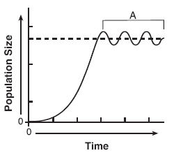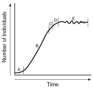 The graph below indicates the size of a fish population over a period of time. The section of the graph labeled A represents