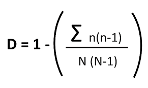 Using the formula for Simpson's Diversity Index what does "N" mean?