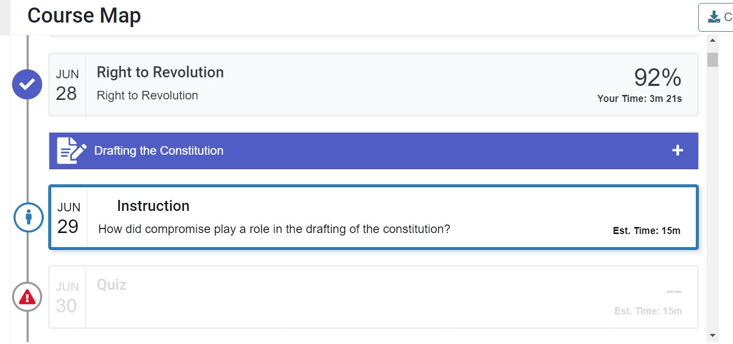 Complete MORE work than what is listed on your course map.  This could be a day early, or 2 months early.  Regardless, it is the same amount of content/work that you have to put in.
