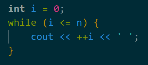 The ++i increments the variable before it is printed, so this implementation actually prints 1 to n + 1 (inclusive). To fix this, we should replace ++i with i++ so we increment after printing its value.