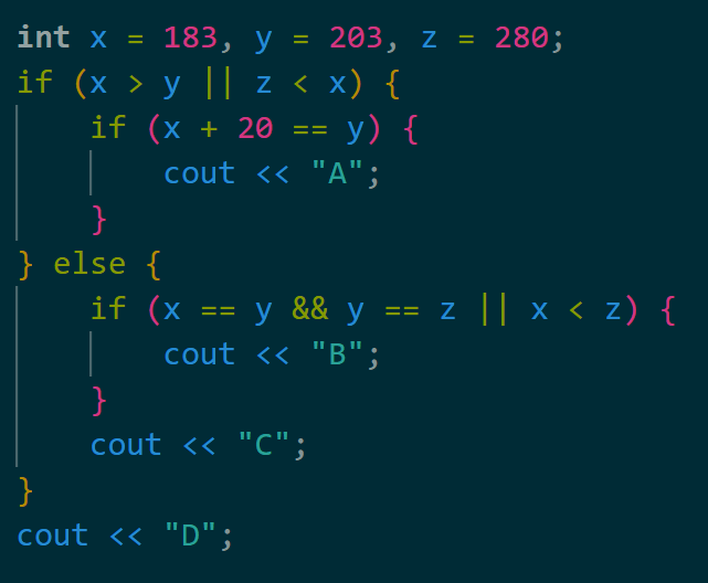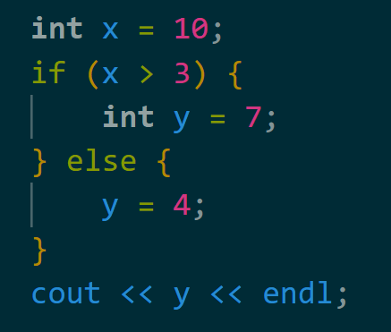 The scope of y is only in the body of code in the if statement but before the else statement; that is, y can only be used: