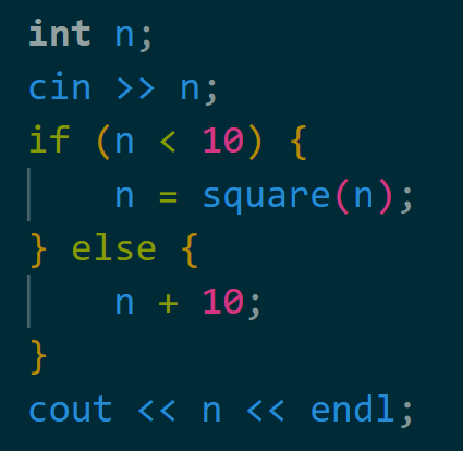 Victoria is writing a program that asks the user for a number n and prints n^2  if n < 10 or n + 10 otherwise. Victoria's current implementation below is buggy, but she knows square(n) correctly returns n * n. What is the issue?