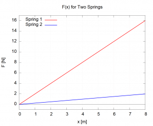 The graph below shows Force vs. Stretch for two different springs, A and B. Which spring has the larger spring constant, and how can you tell?