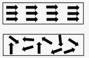 What is the top drawing? Atoms in a permanent magnet are aligned, creating a positive and negative pole.