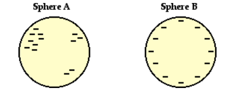 Two spheres are repeatedly touched with a negatively charged rod. Identify each sphere as a conductor or insulator.