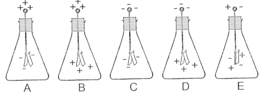If a negatively charged rod is brought close (no touch) to a neutral electroscope which of these diagrams is the result?