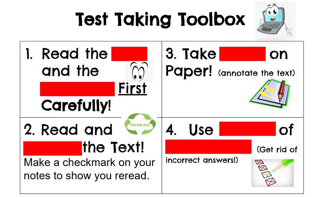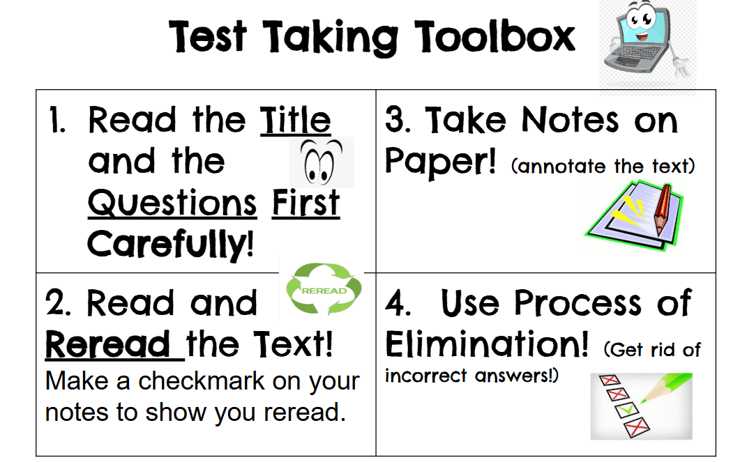 What are 2 of the 4 test taking tools